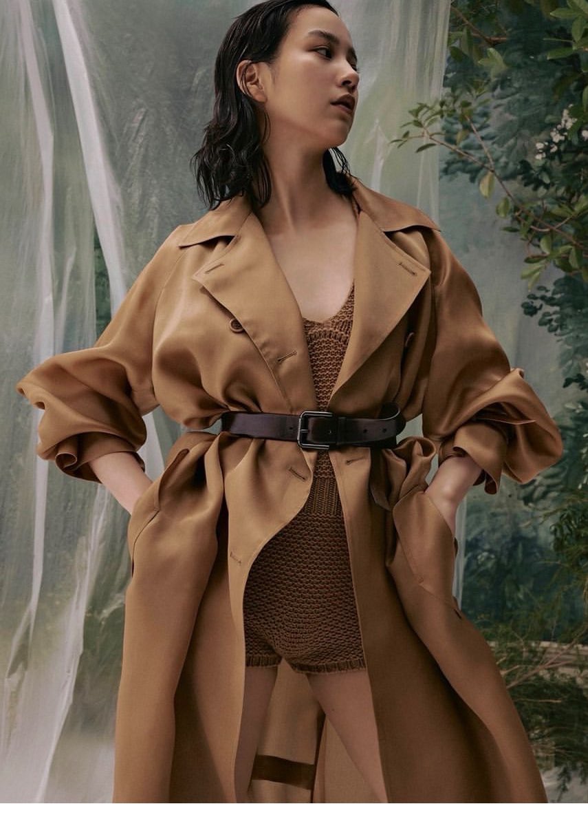 インスタグラムに「肌に馴染(なじ)む軽やかな生地、洗練されたシルエットにうっとり。とても楽しい撮影でした」と記し、ブラウンやピンクのコートを着た姿、ショート丈のパンツにキャミソールを合わせたコーディネートの写真を連投した。