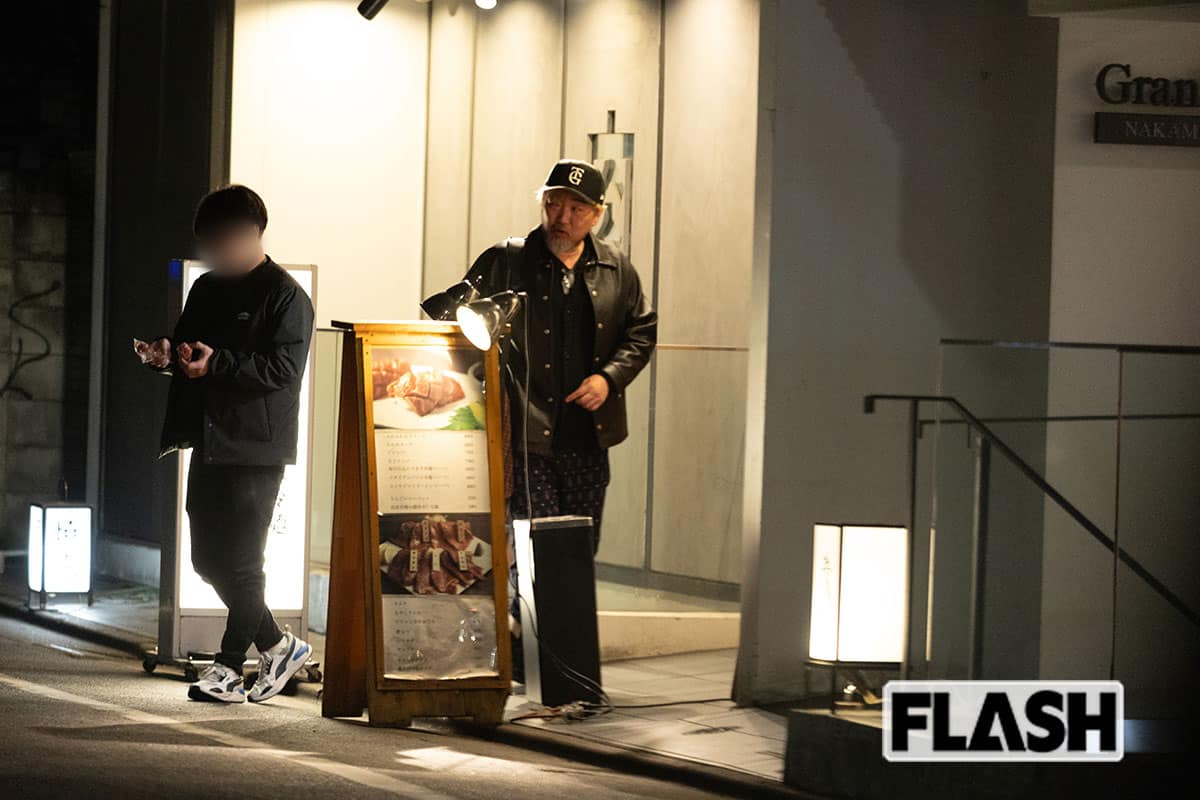 金髪はボサボサ、白髪交じりの無精ひげも伸び放題で、一気に老けた様子だ。都内の焼き肉店に入っていった小沢は、3時間後マネージャーと一緒に出てきた。